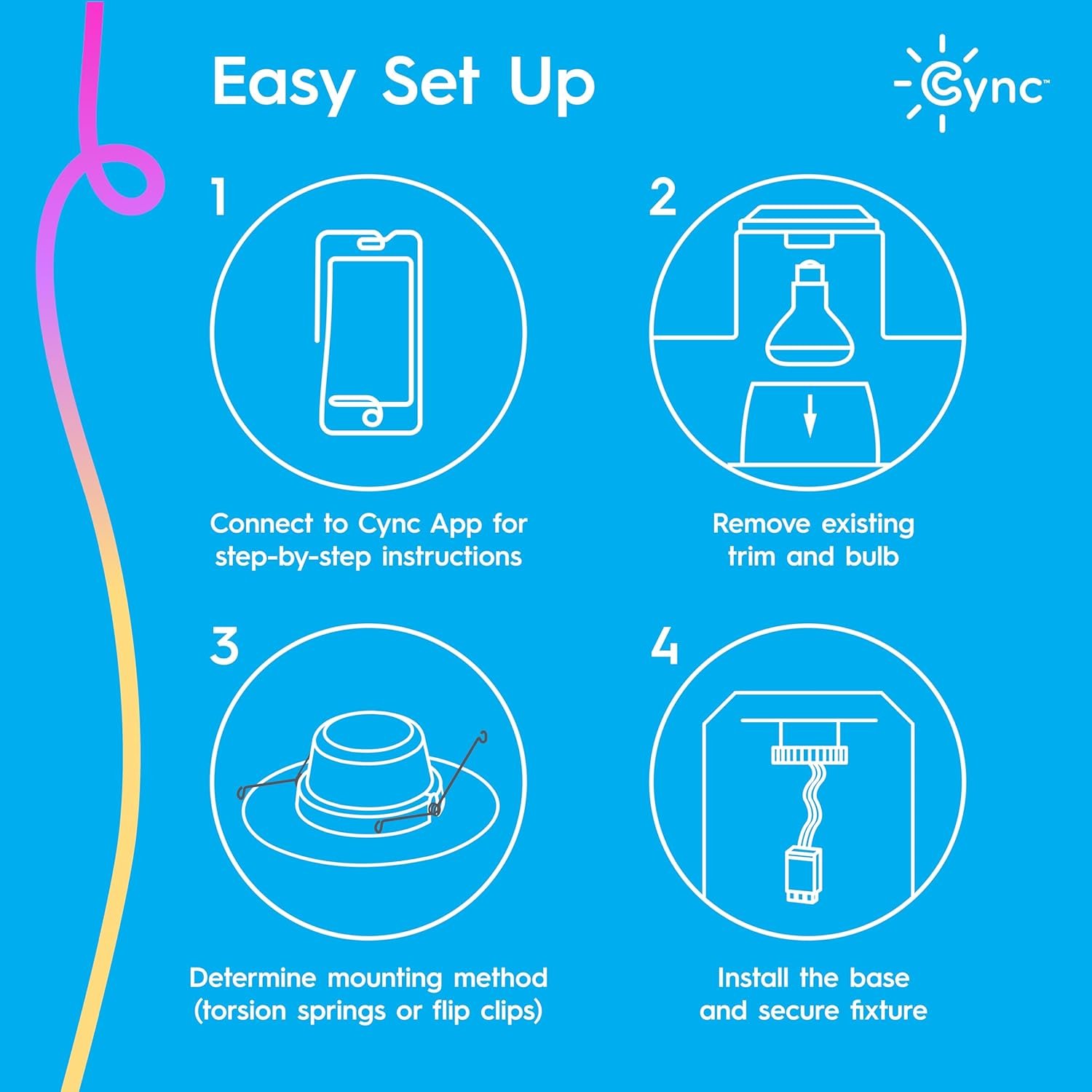 Simple Setup: These lights work right out of the box with no recessed can housing needed; Control your downlights at or away from home with the Cync app, powered by Savant; 2.4GHz Wi-Fi connection is required for control of smart devices